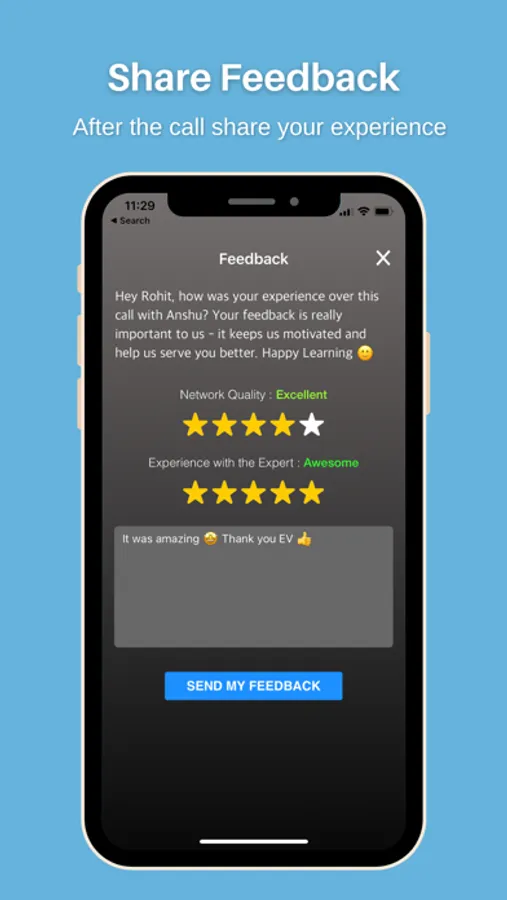 In our English learning app - we're giving you a platform where you can do English Speaking practice with live English experts. The Experts will correct your mistakes, guide you & motivate you. With every session, you will feel more positive, confident, and excited to talk in English. And soon you'll be speaking fluent English without any hesitation.
