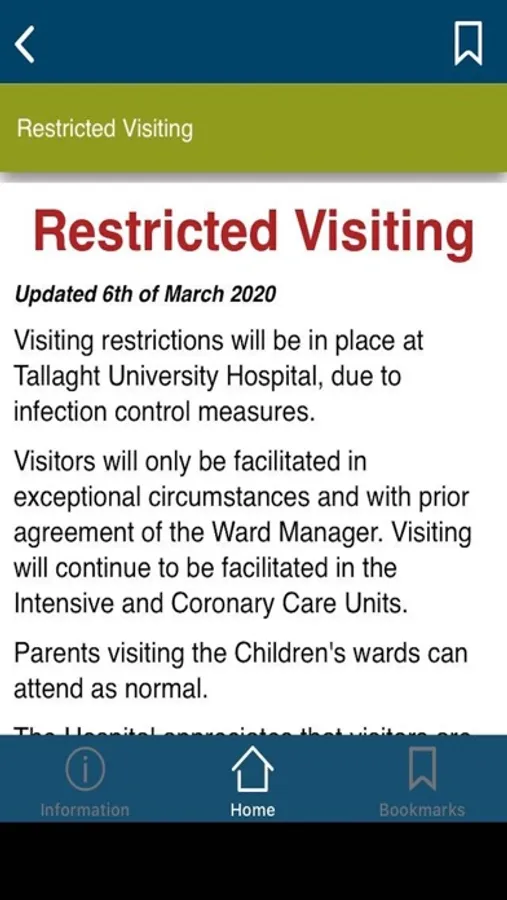 The Tallaght University Hospital App was created to help patients and their visitors before they visit the Hospital.