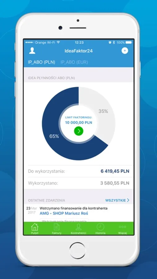 Aplikacja mobilna systemu IdeaFaktor24 to szybki dostęp do Twoich produktów finansowych z każdego miejsca na świecie i o każdej porze. Logowanie do twojego konta jeszcze nigdy nie było tak intuicyjne – aplikacja umożliwia autoryzację m.in. kodem PIN lub symbolem graficznym (wężykiem).