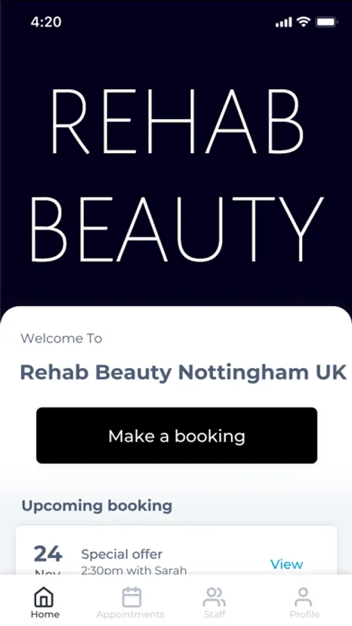 The Rehab Beauty Nottingham UK app makes booking your appointments and managing your loyalty points even easier. You're just a few taps away from feeling good and looking great!