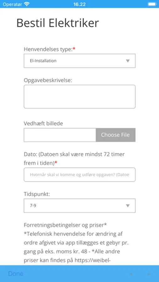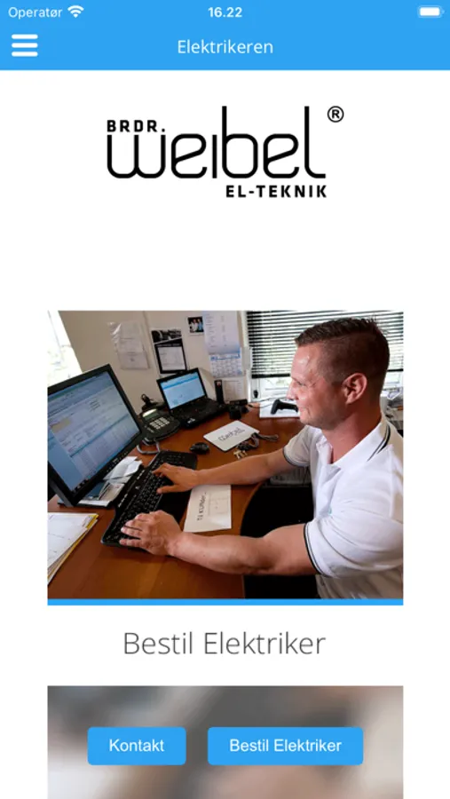 Et smidigt værktøj, til hurtigt at rekvirer en elektriker på få tryk! – Kan benyttes af alle, såsom private, til ejer og andels foreninger, som facility firmaer og den selvstændige vicevært. Ved hver ordre, genereres der mail, med billede hvis det indsat, retur til ordre giveren. Dermed slipper man for at have billeder på mobilen og små sedler, som man skal huske at bestille elektrikeren til.