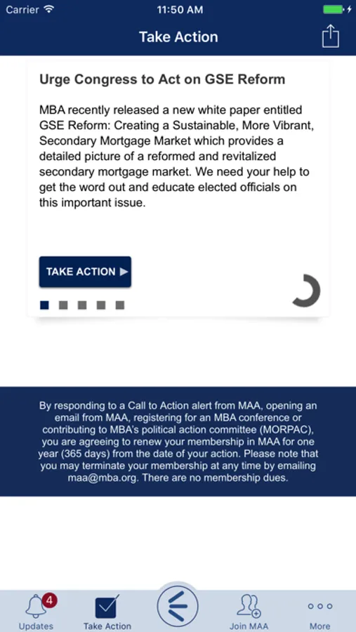 The Mortgage Action Alliance (MAA) App is designed to make standing up for the real estate finance industry easier than ever. It is vital that individuals in our industry take an active role in how laws and regulations that affect our businesses and consumers are created and enforced. We can do this by communicating and building relationships with policymakers.