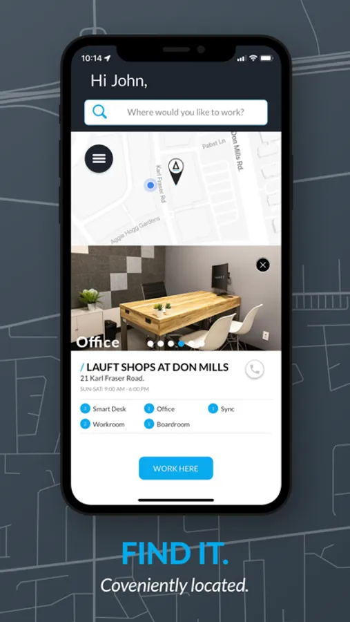 - Easily locate a LAUFT Flexible Smart Workspace close by.