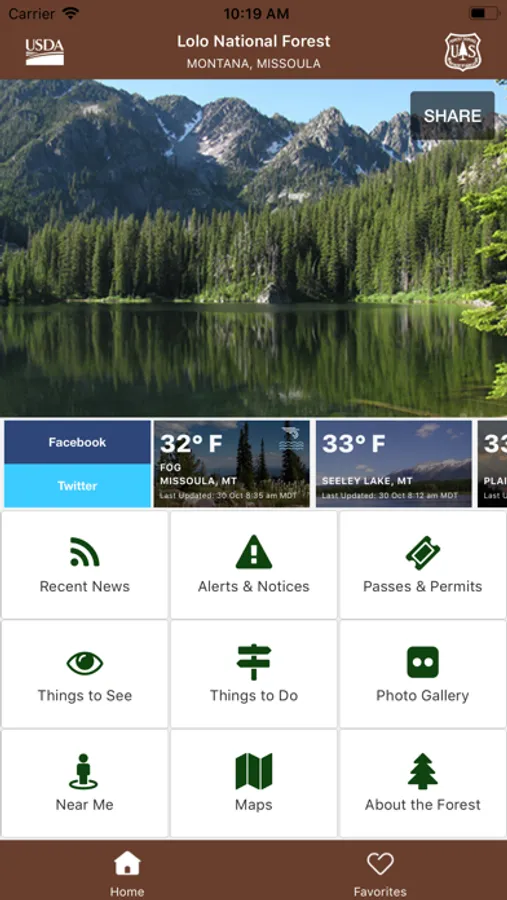 This mobile app gives you access while online to the Lolo National Forest recreational opportunities, public notices, news, alerts, and more. The Lolo National Forest is located in western Montana, headquartered out of Missoula, and covers over 2 million acres of scenic public land, ready for you to explore! With campgrounds, picnic areas, lakes and rivers, trails for hiking, horseback riding, bicycling and OHVs, scenic mountain roads, rustic cabins and lookouts to rent, and so much more, you are guaranteed to find the perfect activity! In the winter explore our extensive cross-country and downhill skiing opportunities, go snowboarding or snowmobiling, or get off the beaten path for a quiet snowshoe adventure. Here are just some ways of using this app to ensure you're taking advantage of all the great tools and information available: