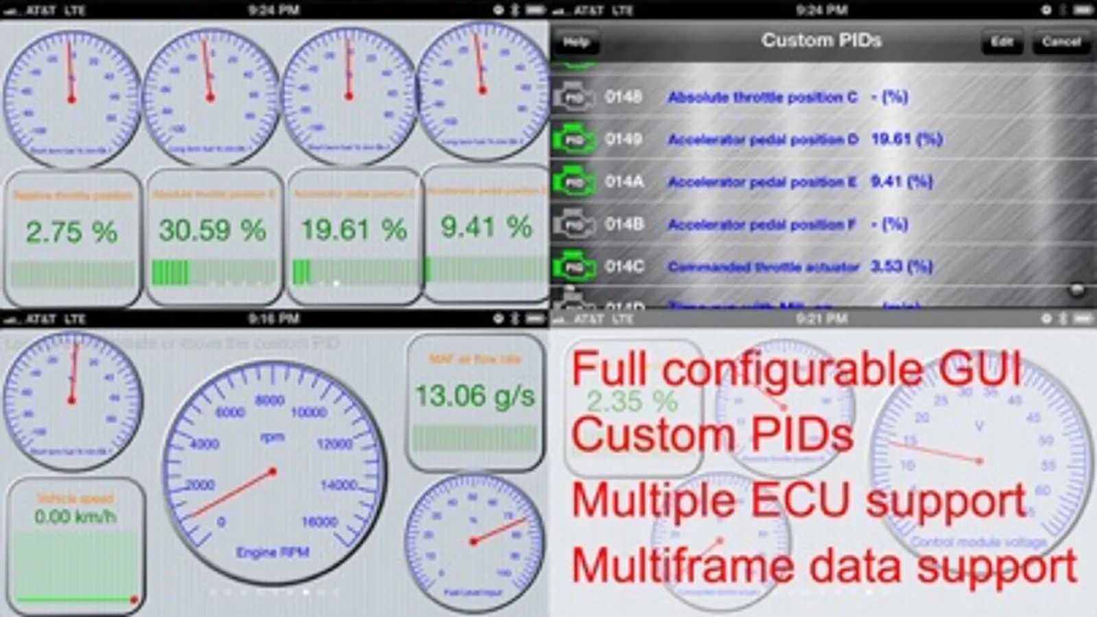 + Multiple ECU support. Non-CAN, 11-bit CAN, and 29-bit CAN ECU bus types