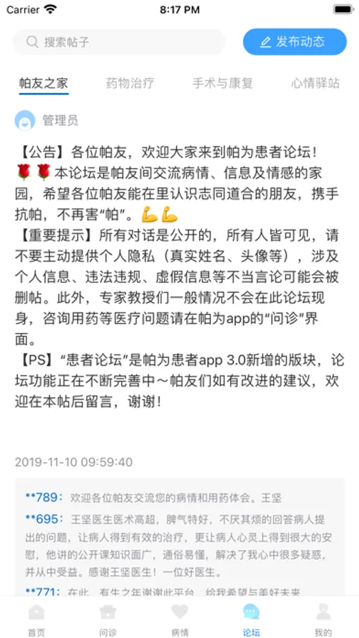 6、帕为患者内所有用户发表的故事、经验、评论仅代表用户个人观点,并不表示帕为患者赞同其观点也并不表示帕为患者已证实其描述,我们不承担帕为患者用户所发表的内容及其引发的任何法律责任。