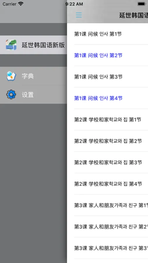 本应用课程与新版《延世韩国语》(1-6)中的第1册韩国语原版教材同步。