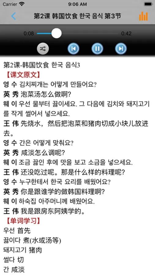 本应用课程与新版《延世韩国语》(1-6)中的第2册韩国语原版教材同步。