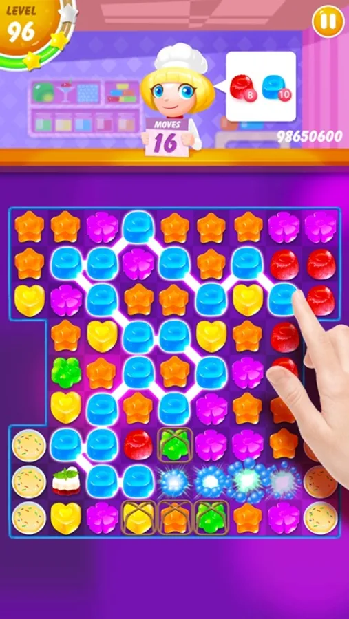 • Collect required Purple Leaves, Cherry Jelly, Mint Flower within limited moves
