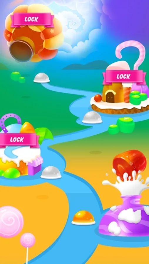 • Match through new world: Jelly Fair, Ice cream Slope, Candy cane Villa