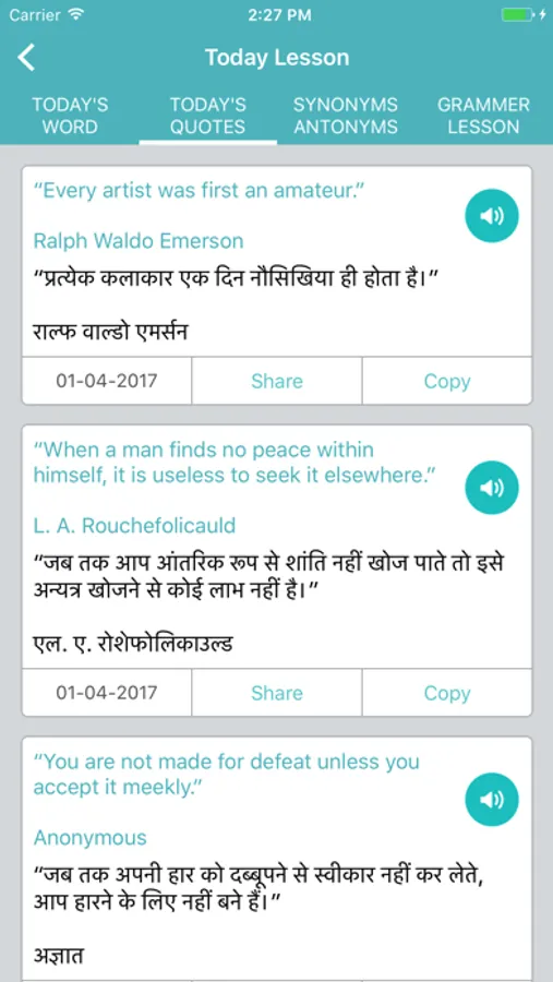 * Today Lesson - Daily Words , Quotes , Synonym & Antonym , Grammar Lesson with hindi meaning.