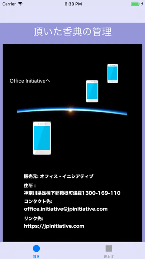 「頂いた香典」と「差し上げた香典」を、それぞれタップすることにより、別の画面に推します。