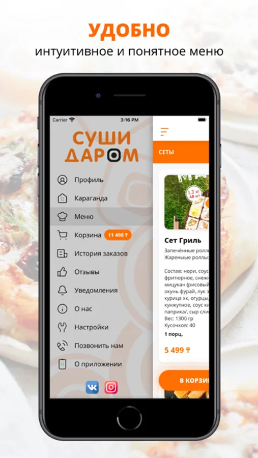 посмотреть меню и совершить онлайн-заказ,