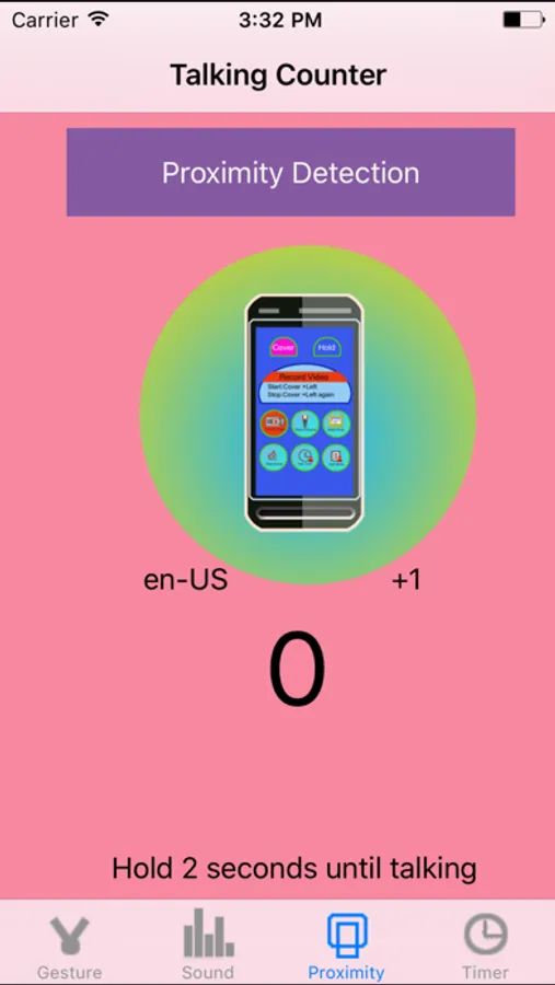 In the proximity sensor counter, we do not need to watch the screen of iPhone, we just cover the top of the iPhone for one seconds or two seconds, the iPhone will talk the counting.