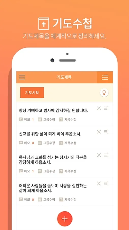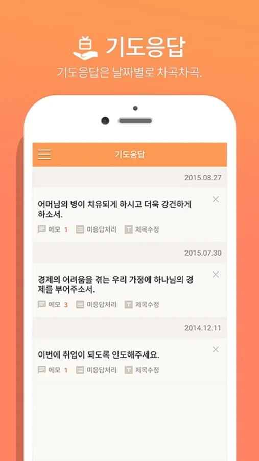 - 기도응답은 따로 정리하고 메모를 추가할 수 있습니다.