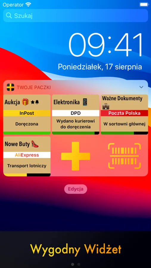 Zeskanuj kod kreskowy z etykiety, nazwij i gotowe! Możesz już śledzić drogę każdej paczki! Czy przesyłka dojdzie jeszcze dziś? Szybkie spojrzenie na widżet widoku dnia dzisiejszego i wszystko jasne (wyświetla do 6 paczek naraz!)