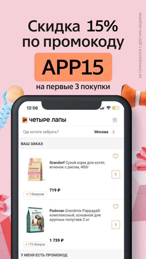 Бесплатное мобильное приложение Четыре Лапы – это интернет-зоомагазин в Вашем смартфоне. Корма, средства по уходу, аксессуары и многое другое. Выбирайте любимые товары, совершайте покупки, а мы доставим их, где бы Вы ни находились.