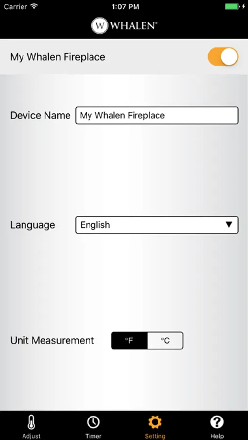 Easily connect your Whalen Electric Fireplace to your smart phone or tablet via Bluetooth. Control all aspects of your fireplace from your smart phone or tablet.