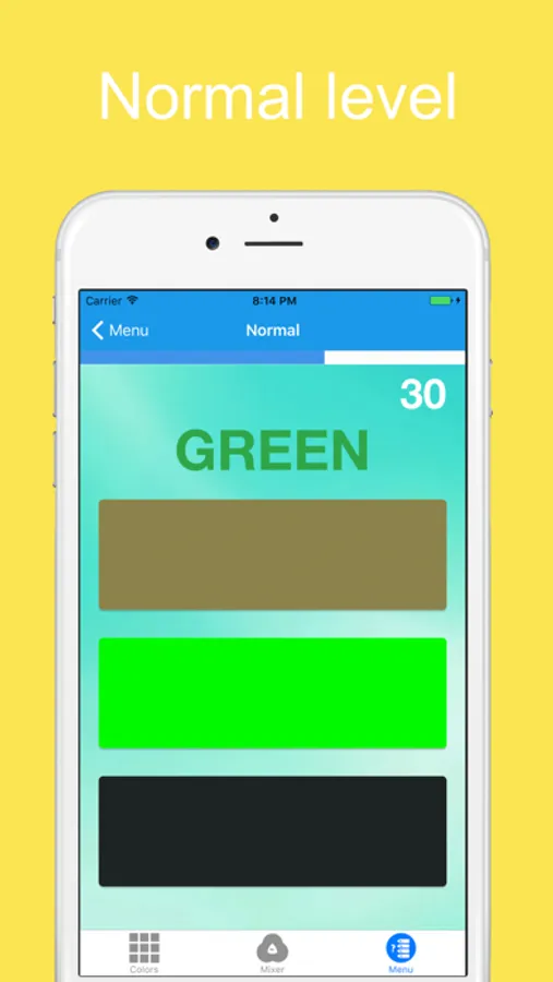 3. Playing game. Children can revise the color lessons they learned from first screen. There are challenged in 3 game levels.