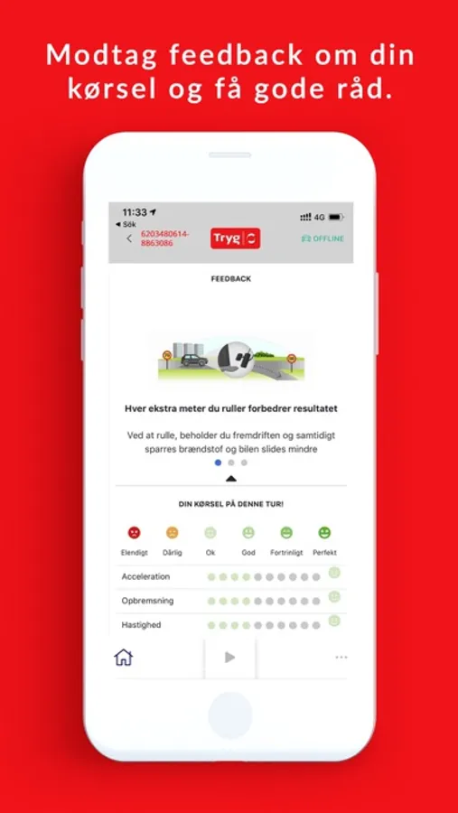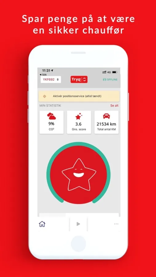 Tryg Drive measures how you drive your car. After each ride you get stars for good driving, and tips on what improve.