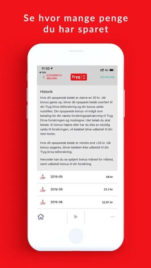 If you have a Tryg Drive car insurance, you can use the app to earn bonus. You can save up to 30% on insurance if you drive well.