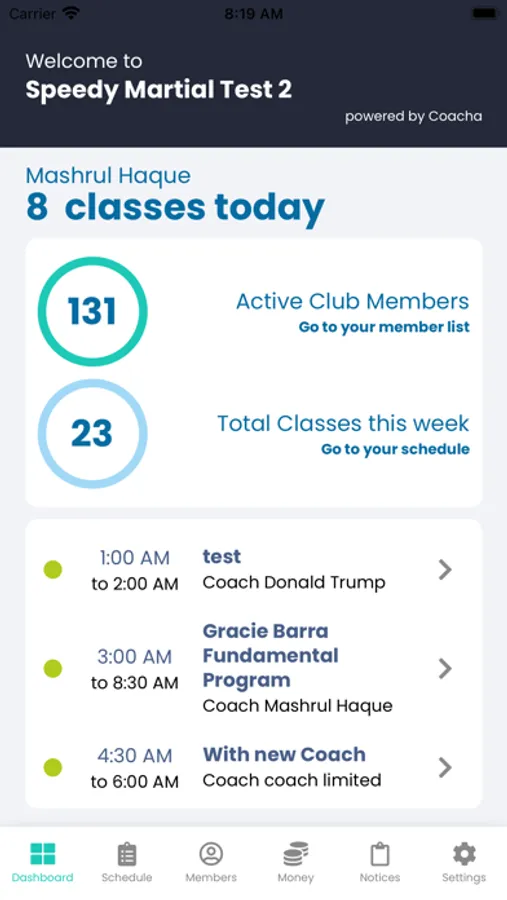 Coacha software makes it easy for amateur sports coaches and club secretaries to manage their clubs and members. It helps to monitor attendance and keep track of club finances, all the while ensuring member information stays safe and secure. Coacha is straightforward and simple to use, but useful in all the right ways.