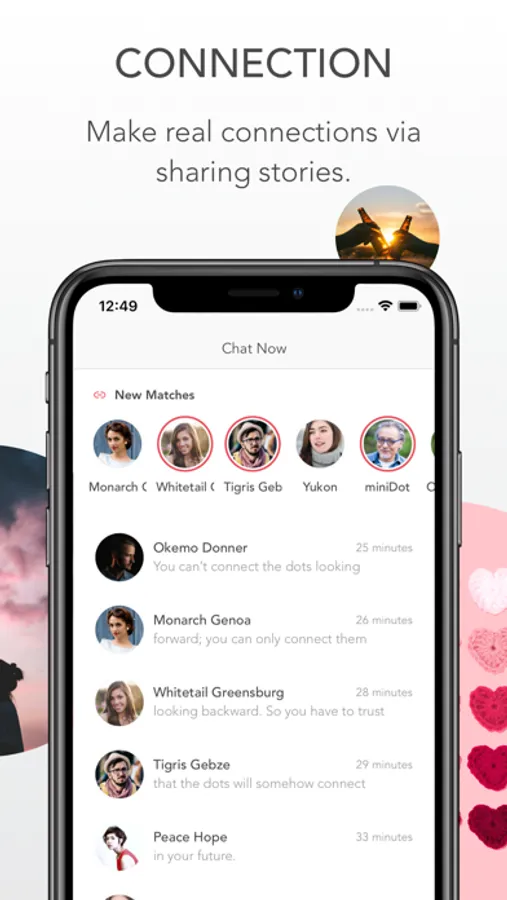 The strongest connections always come from telling your stories, so miniDot decides to bring a brand new experience to friend-making apps: no more large selfies, boring profiles and endless swiping games for random hookups, your stories will help you make real connections with new people.