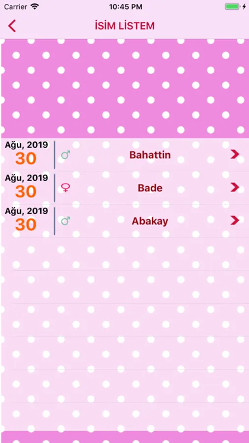 İncelediğiniz bebek isminin anlamını okuduktan sonra bu ismi çocuğuma verebilirim diyorsanız "İsim Listeme Ekle" butonuna tıklayarak bu ismi kolayca "İsim Listem" bölümüne ekleyebilirsiniz. Böylece daha önce hangi isimleri beğenmiştim?" diye merak ettiğinizde tarihleriyle birlikte uygulamamızdan kolaylıkla takip edebilirsiniz.