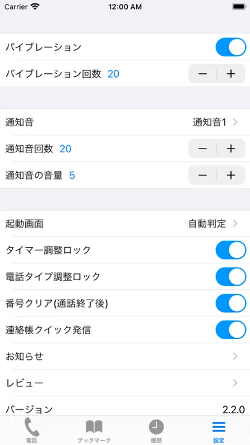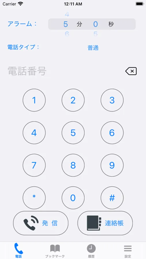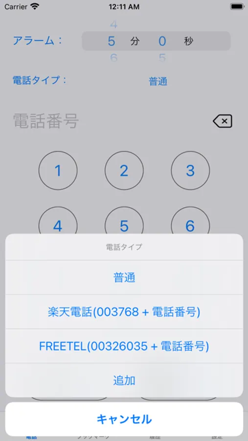 通話タイマーは通話時間を測り、設定したアラームに応じて、通知を行います。特に各社の5分、10分、X分通話放題プランに対して、ピッタリです!また、各社のプレフィックス電話にもおすすめ!