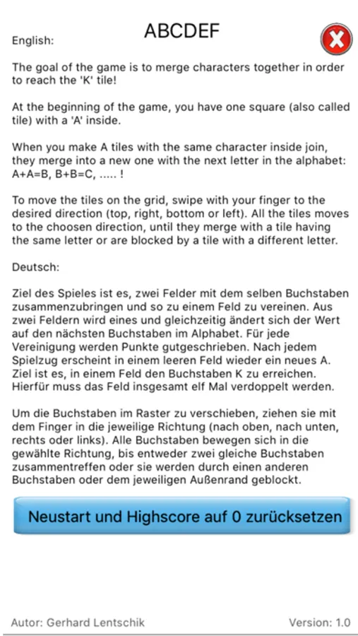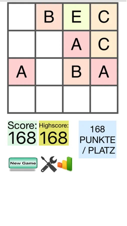 To move the tiles on the grid, swipe with your finger to the desired direction (top, right, bottom or left). All the tiles moves to the choosen direction, until they merge with a tile having the same letter or are blocked by a tile with a different letter.