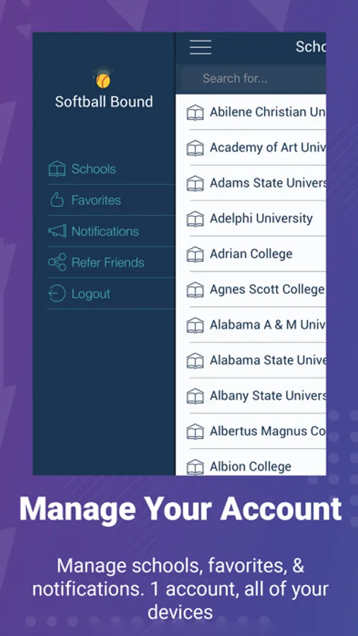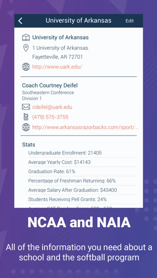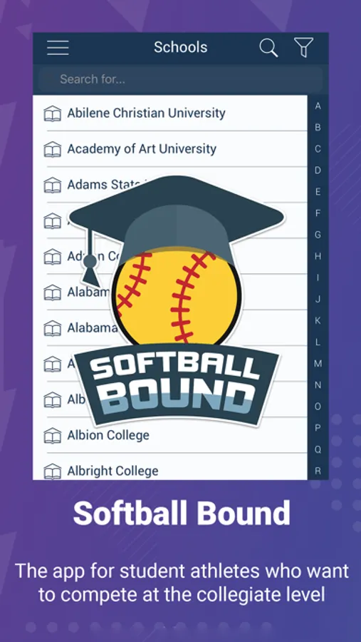Softball Bound is the recognized leader in providing up-to-date information for college softball recruiting, recruits, and families. How does a potential college recruit know what school is right for them? Our easy-to-use app lets you locate any college softball program, coach, or school quickly and easily. Get essential information such as school size, average GPA and test scores, cost to attend, financial aid, etc. All the information required to contact coaches directly is here too! With Softball Bound, you’ll get more than a list of schools or coaches. You will have access to all the information you need to decide which schools fit you athletically, academically, and financially. The next step, you’re Softball Bound!