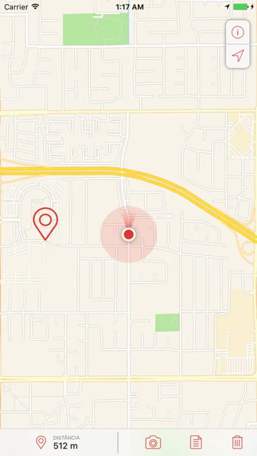O Locate também te mostra a distância a qual esta do posicionamento do ponto marcado.