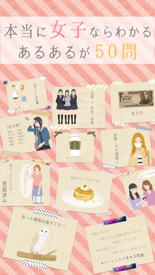 「女子あるある」は、一般の方々の意見を元に作られた内容になっております。