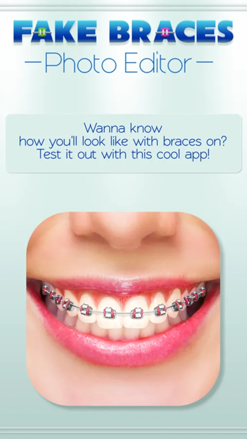 Get your nerdy look on! Fake Braces Face Photo Editor is your cool new app for adding numerous trendy looking braces to your teeth. Choose the braces that you like, apply them to a photo and get ready to take on social networks with your awesome accessory. Braces are no longer for geeks or nerds – these teeth decorations can be fashionable and stylish. Download it now to see how chic you can be with braces.
