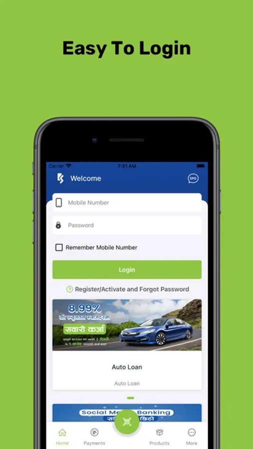 To be able to use this App, you first need to have a valid account maintained at Kamana Sewa Bikas Bank, and you need to subscribe to the Kamana Sewa Bikas Bank's Mobile Banking Service.