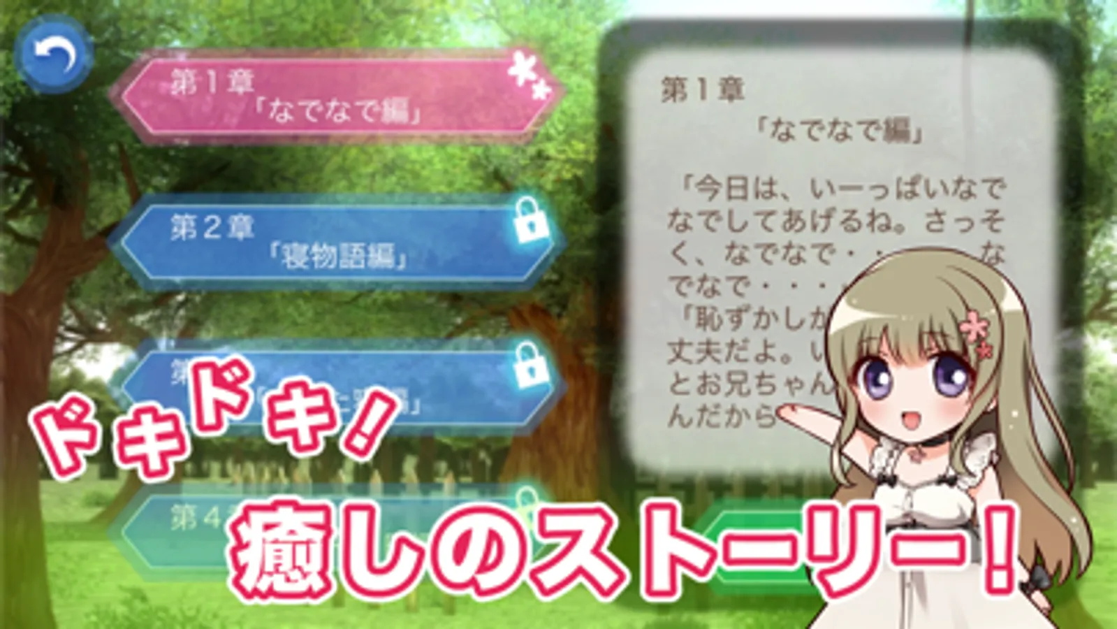 VRゴーグルがあれば、美しい世界に飛び込み、"こかげちゃん"(CV 羽月 理恵)の温かい膝枕を体験できます。