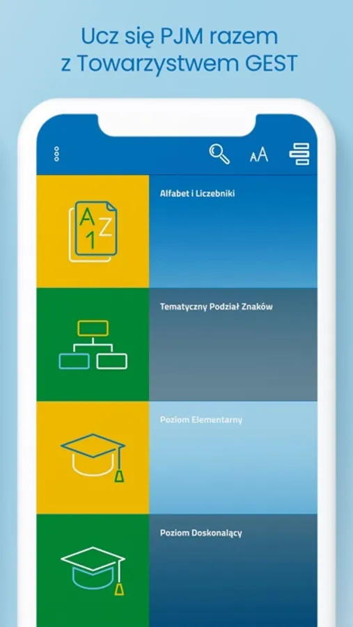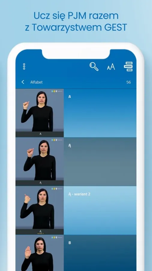 Aplikacja zawiera ponad 500 filmów w tym 43 lekcje tematyczne, alfabet, liczebniki, słowniczek znaków, częste wyrażenia potrzebne w codziennej komunikacji, a nawet quizy dopasowane do poszczególnych lekcji. Umieściliśmy również podział tematyczny znaków wg następujących kategorii: OSOBY, RODZINA, W DOMU, CZAS, CZĘŚCI CIAŁA, MEDYCYNA, ZWIERZĘTA, POLITYKA, RELIGIA, PAŃSTWA, MIASTA, KOLORY, JEDZENIE, WARZYWA, OWOCE, SPORT, EDUKACJA.