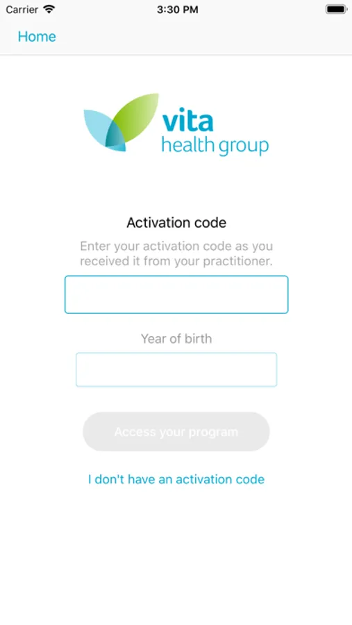 Note that you will receive the access code to access this app from your healthcare practitioner.