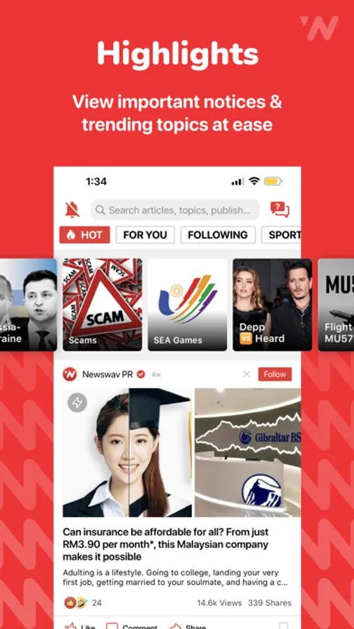 • Easily catch up on the development of trending stories on our HOT feed's Highlights section