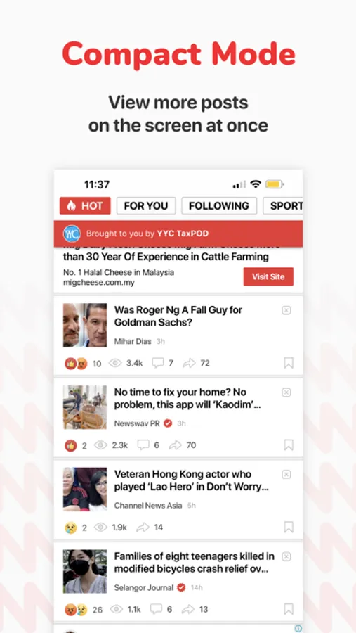 • Contains news and content from over 400+ major publishers, websites, and independent content creators in Malaysia and around the world. Read The Straits Times, The Sun Daily, The Edge, Malay Mail, BFM 89.9, SCMP, The Vibes, The Borneo Post, La Liga, The Rakyat Post, World of Buzz and more - all at one place