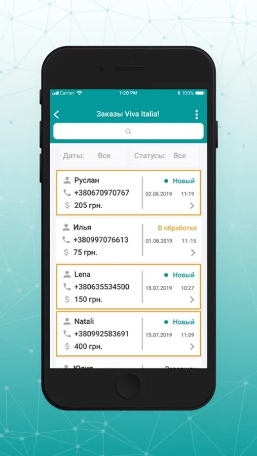 Управление заказами приложений созданных в конструкторе mo-apps.com. Уведомление о новых заказах. Редактирование заказов.