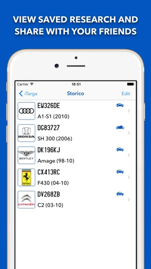 • Get all technical details of the italian vehicles (brand, model, power, registration and other useful information).