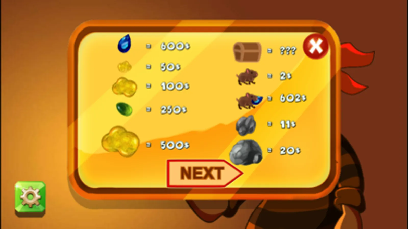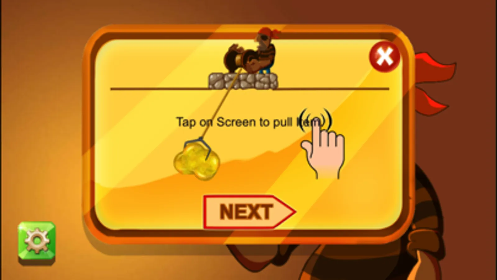 Use your claw and reel to mine gold and other treasures out of the earth. Your claw will swing back and forth. Tap screen to lower it. Once it has grabbed something it will reel it up. Heavy objects like rocks and large pieces of gold will be harder to reel up. Grab bags contain random amounts of money, a strength power-up, or a stick of dynamite. Between levels you can buy items that can help you.