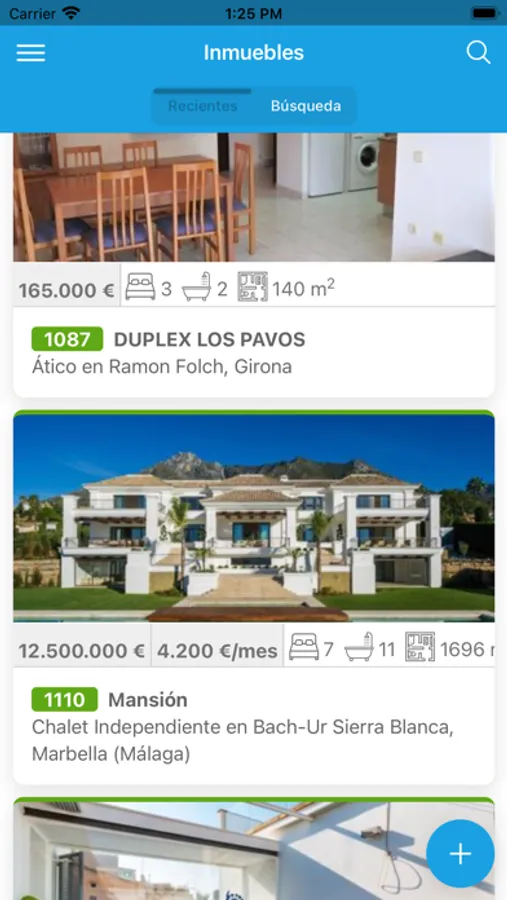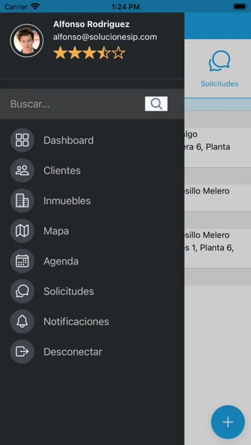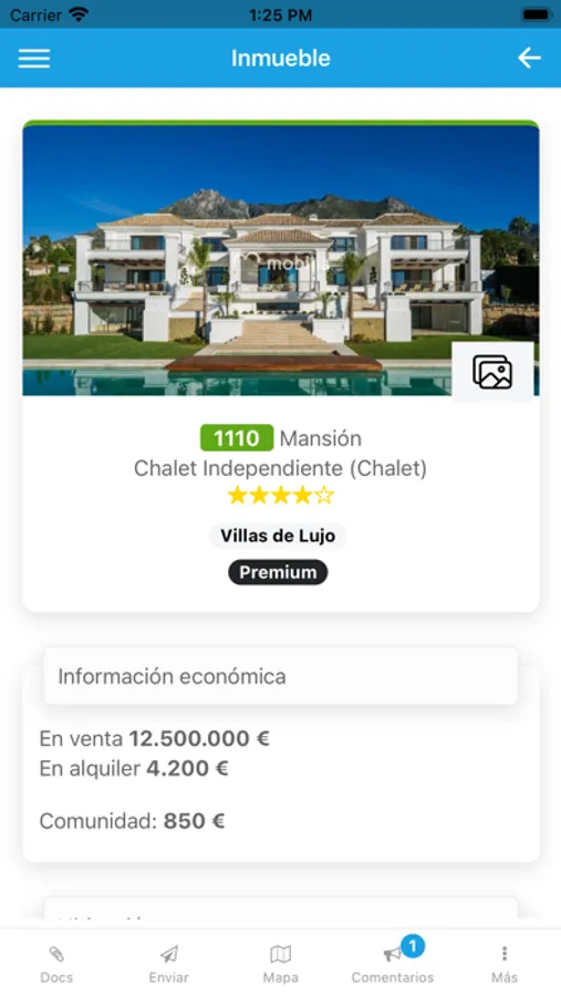 También te permite incluir nuevas imágenes directamente desde la cámara de tu móvil, crear eventos o acceder al mapa de localización de toda tu cartera de inmuebles.