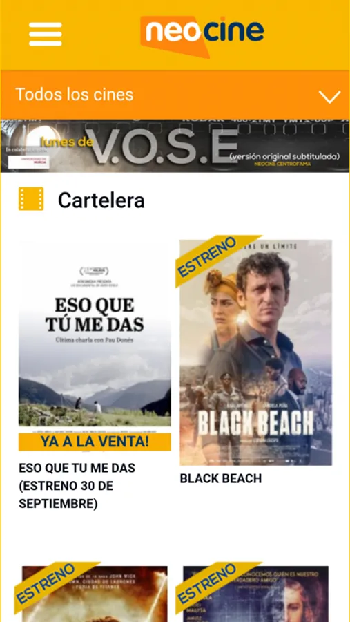 Te recordamos que sólo es posible comprar entradas para las salas del Circuito Neocine en España.