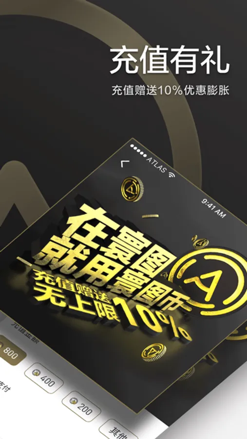 APP 在线充值立享 5% 赠送(每充值 100 ATLAS COIN 额外获赠 5 ATLAS COIN),快来使用吧!