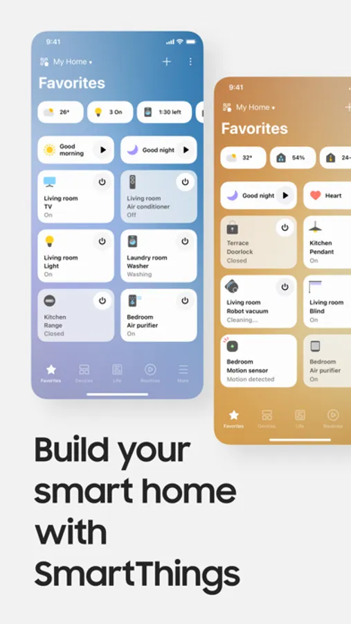 - Build routines that are set on time, weather, and device status, so your home runs smoothly in the background