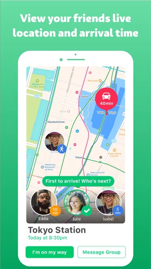 Easily organize events and know exactly when your friends will arrive with Ikou!