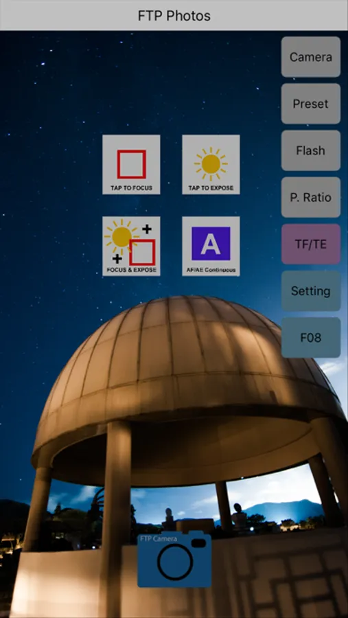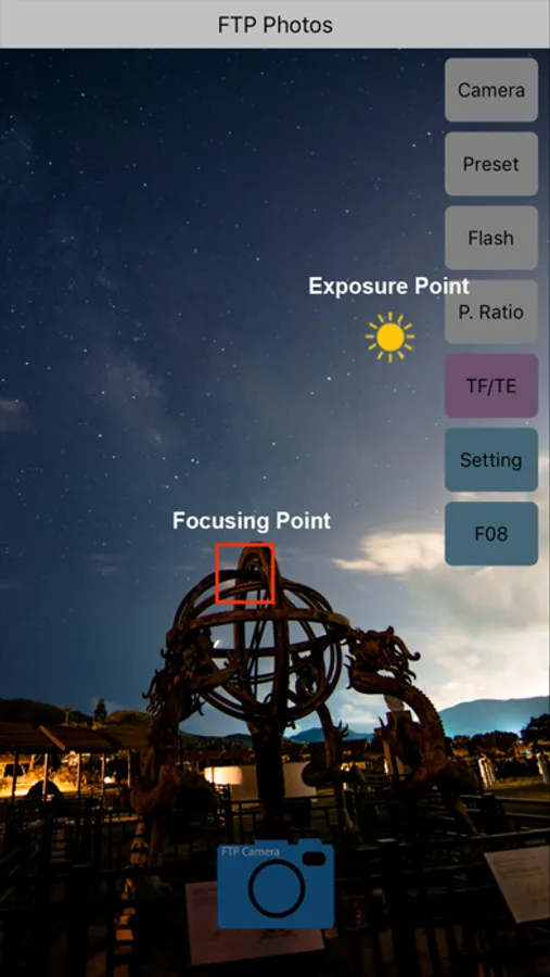 FTPcam also provide "TF/TE" feature (tap to focus / tap to exposure), you can manually select your point of interest of focusing or exposure separately by tapping the screen.