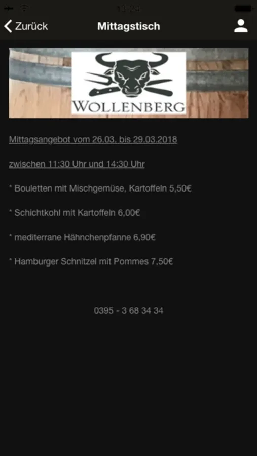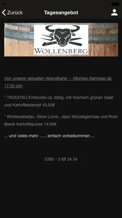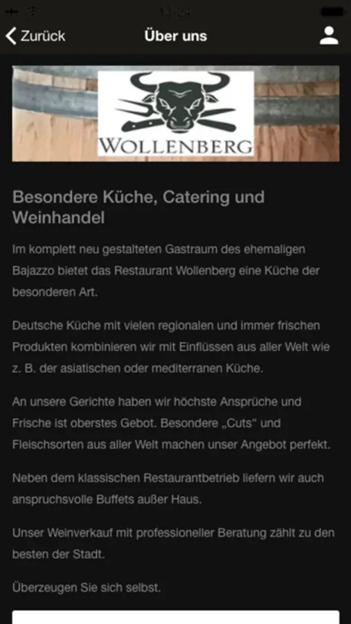 Herzlich Willkommen zur offiziellen App von Wollenberg iun Neubrandenburg! Hier erfahren Sie alles über unser Restaurant und Kontaktmöglichkeiten. Verschaffen Sie sich einen Überblick über die Wochenangebote unsere Weine und das Mittagangebot. Stellen Sie eine Buchungsanfrage für einen Tisch oder finden Sie uns über den Punkt Anfahrt!